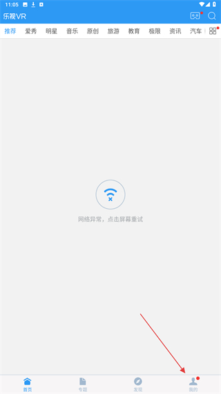 1、在乐视VR的主界面,点击底部导航栏中的我的选项,进入个人中心页面。