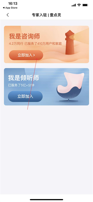 3、在专家入驻页面选择对应身份,点击立即加入。