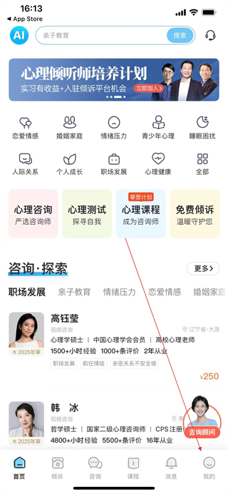 壹点灵app是一款可以帮助人们打造健康心理的服务平台,通过该软件用户可以在线预约专家,通过咨询师背景介绍、擅长领域、收费情况等多方面信息,找到合适自己的咨询师提交预约申请,说出你的心事,让专业的咨询师帮你解答并给建议。
