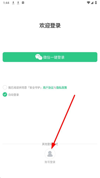 1、在欢迎登录页面,点击账号登录选项,切换至账号登录的操作界面。