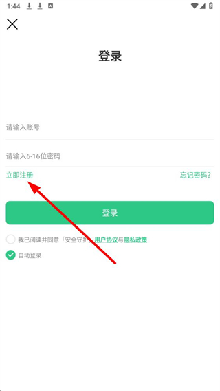 2、在登录界面,点击立即注册选项,进入注册界面。