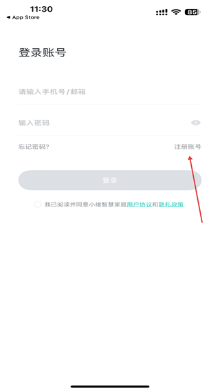 点击云视通生活APP,进入登录界面,点击注册,输入手机号或邮箱,点击下一步,设置密码,获取验证码后进行输入,勾选我阅读并同意注册协议,点击注册按钮,完成注册。随后页面跳转至登录界面,输入密码,完成登录。