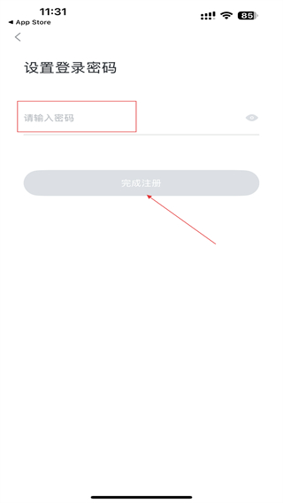 4、进入设置登录密码页面,输入想要设置的登录密码,点击完成注册按钮。