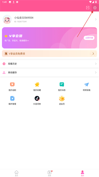 2、在我的页面右上角,点击设置的图标,进入设置页面。