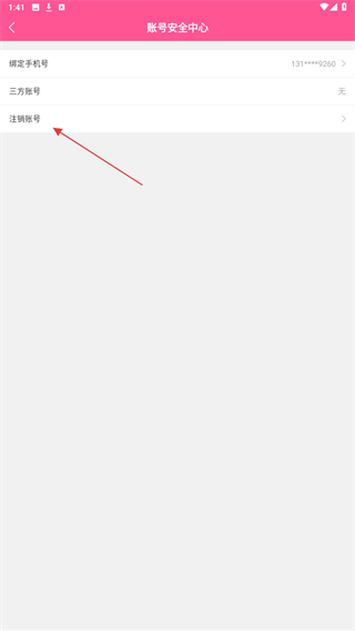 4、在账号安全中心页面,找到注销账号选项并点击,即可注销成功。