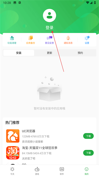 1、打开豌豆荚首页,点击页面右下角我的选项,进入个人中心页面。