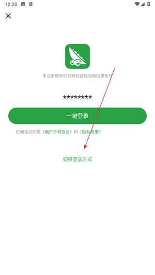 3、在登录选择界面,点击切换登录方式,进入验证码登录的操作页面。