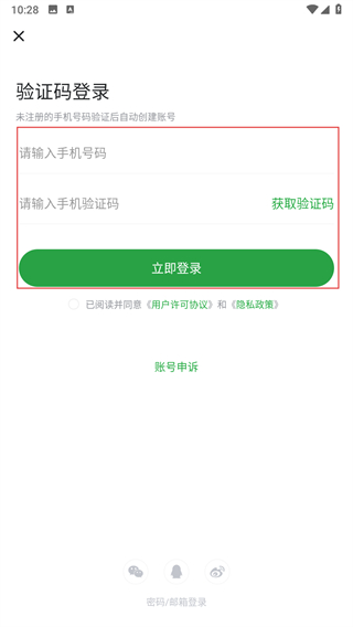 4、在验证码登录页面,输入手机号码并获取验证码填写,点击立即登录。