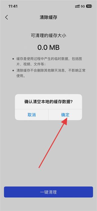 4、在弹窗中,点击确定按钮,即可完成缓存清理。