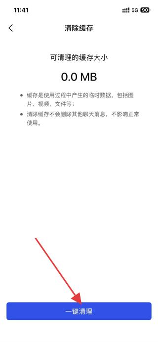 3、在清除缓存页面,点击下方的一键清理按钮。