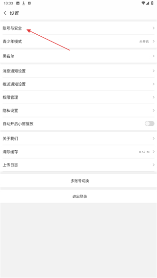 3、在设置页面里,选择账号与安全选项,进入账号相关设置界面。