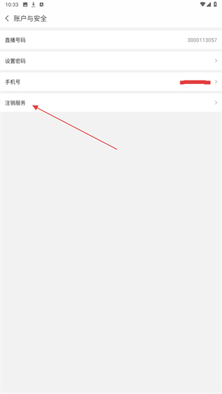 4、在账号与安全页面中,点击注销服务选项,进入注销须知页面。