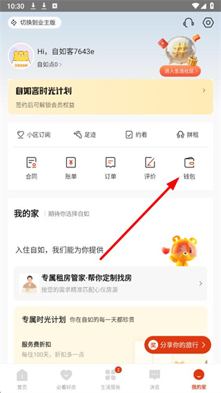 1、打开自如应用,点击底部我的家选项,进入个人界面。