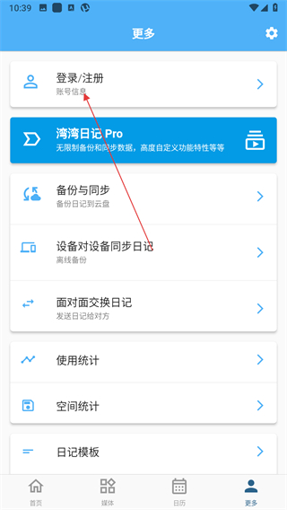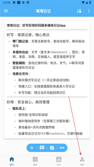 1、打开湾湾日记应用,找到导航栏下方的更多,点击进入。