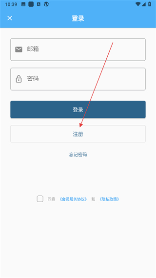 3、进入登录页面之后,点击页面中间的注册按钮,进入注册页面。