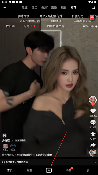1、在火山小视频主界面底部,点击中间的+按钮,进入拍摄准备页面。