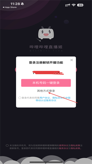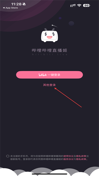 1、启动哔哩哔哩直播姬,在首页点击其他登录的按钮。