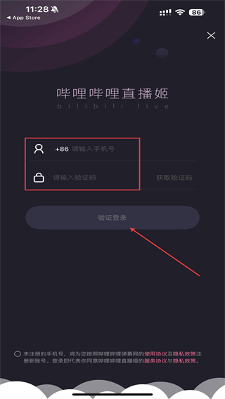 3、输入手机号、验证码后,点击验证登录即可完成。