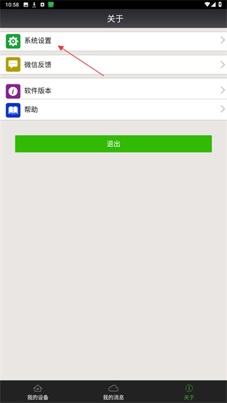 2、在关于的页面内,点击上方系统设置的功能按钮。