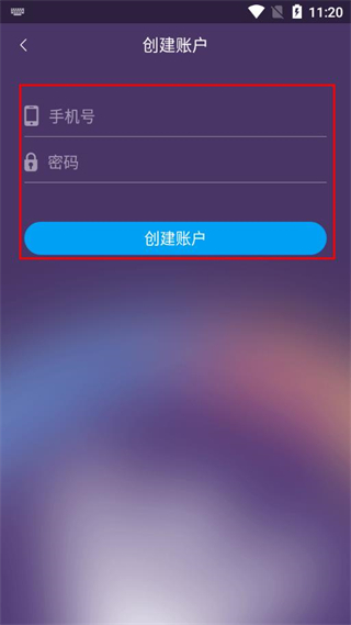 3、在创建账户页面,填写手机号和密码,点击创建账户完成注册。