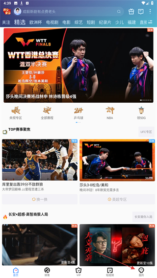 1、启动咪咕视频APP并进入到首页,点击底部导航栏最右侧的我的。