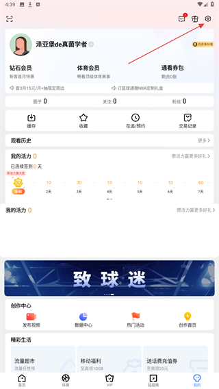 1、打开咪咕视频,点击底部导航栏的我的,进入个人中心页面。