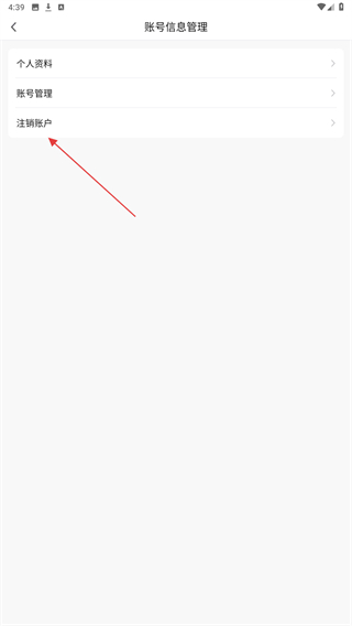 4、在账号信息管理页面,点击注销账户选项,即可进入账号注销的流程页面。