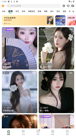 1、打开酷狗直播的应用,点击首页右下角我的按钮。
