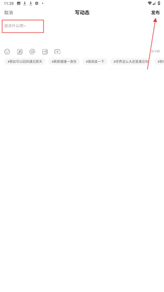 3、输入内容后,点击右上角发布的按钮即可成功。