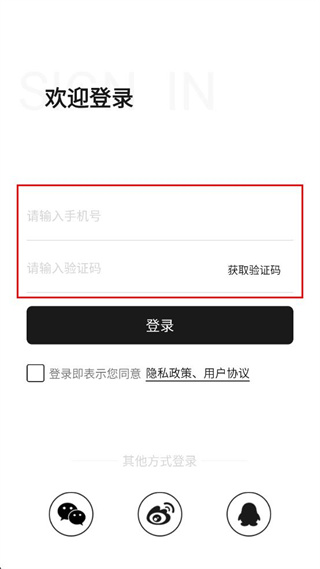 1、打开该软件,进入欢迎登录页面,找到手机号输入框,填写对应的手机号码信息。