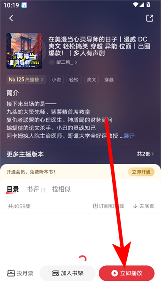 3、在内容详情页,点击立即播放按钮,进入听书界面。
