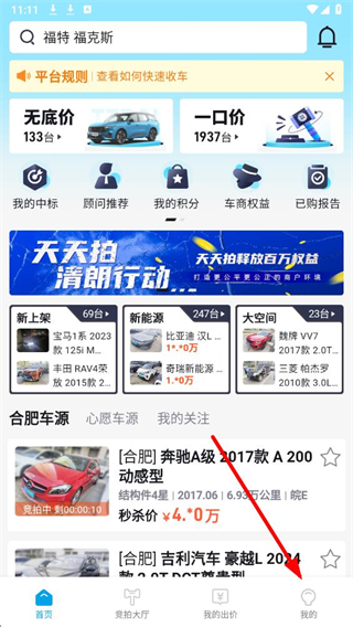 1、在天天拍车主界面,点击底部我的,进入个人页面。