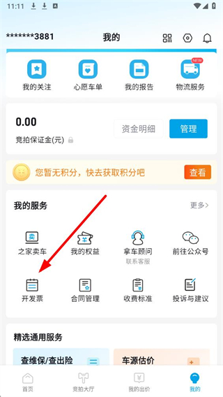 2、在我的页面,找到我的服务板块,点击其中的开发票选项,进入发票相关操作界面。