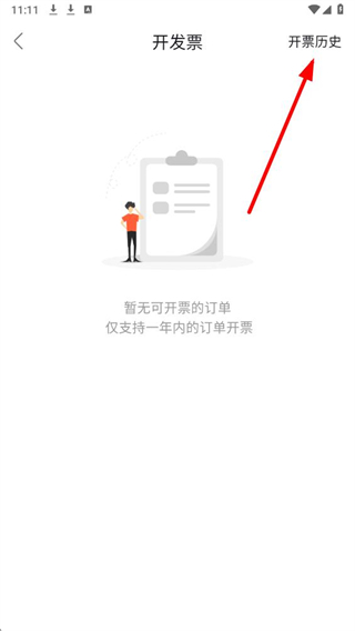 3、在开发票页面的右上角,点击开票历史按钮,即可进入对应的记录查看页。