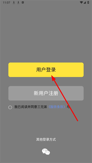 1、在三兄弟app界面,点击用户登录按钮,进入登录选择页面。