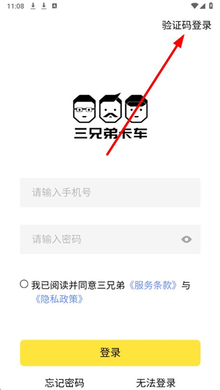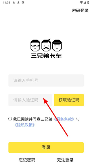 3、在界面输入手机号,获取验证码,勾选同意条款政策,点击登录按钮完成验证码登录操作。