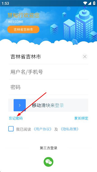 1、打开慧知行小学版APP,在登录页面点击忘记密码。