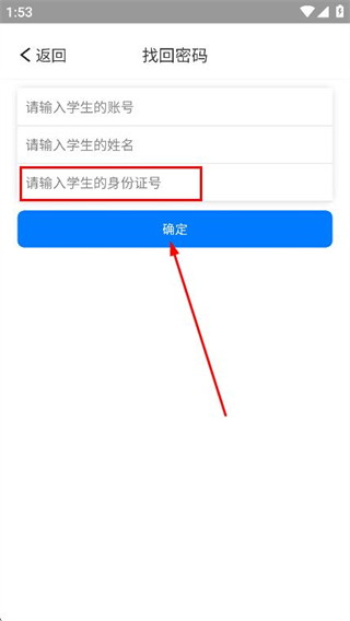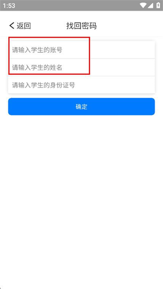 3、在找回密码页面,依次填写学生账号和学生姓名。