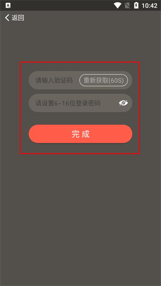3、填写收到的验证码,设置登录密码,点击完成即可完成账号注册。