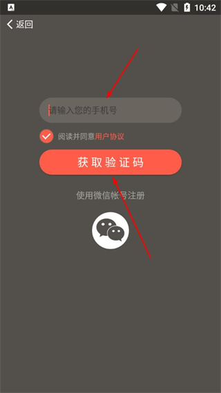 2、在注册页面输入手机号,勾选阅读并同意用户协议后,点击获取验证码。