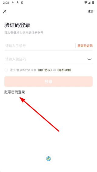 3、在登录界面里,选择账号密码登录选项,切换至密码登录的操作页面。
