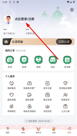 2、在个人页面点击点此登录注册,进入登录注册页面。