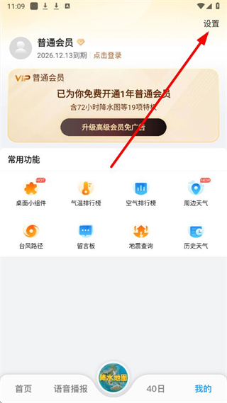 1、打开15日天气预报app,在我的页面,点击右上角设置图标。