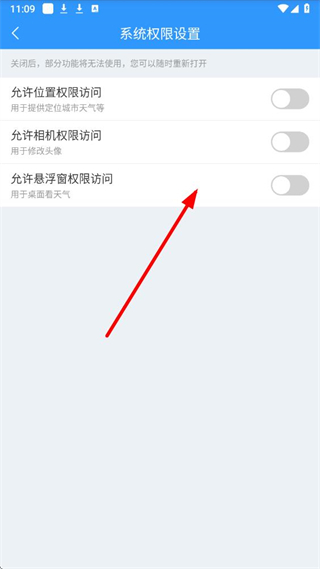 4、在该界面可对位置、相机、悬浮窗等权限的开关进行调整,完成权限管理操作。