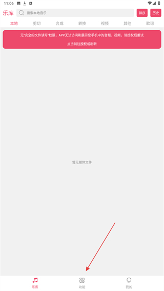1、打开音乐剪辑器的乐库界面后,点击底部导航栏中的功能选项。