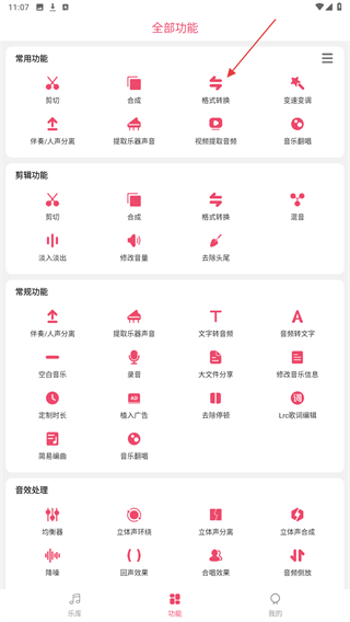 2、进入全部功能的选择页面,找到格式转换选项并点击。