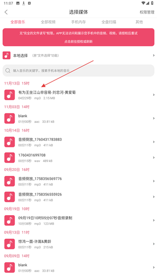 5、进入音频的界面内,找到目标的本地音乐即可完成。