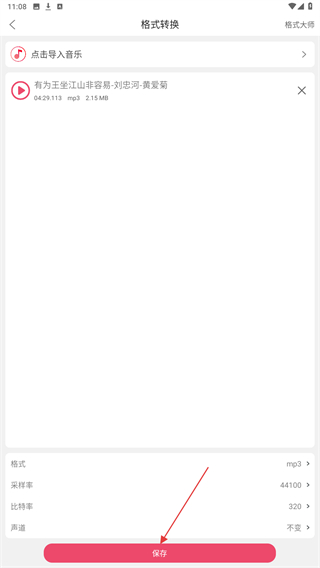 5、根据需求调整格式、采样率等参数,确认后点击保存按钮。