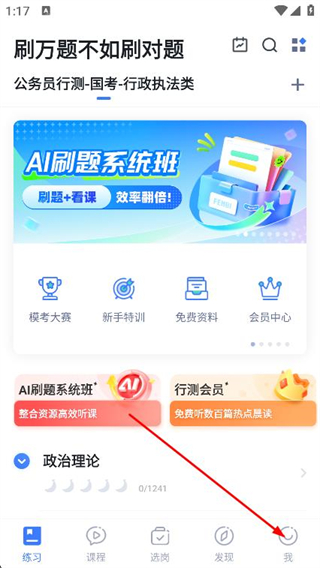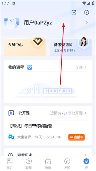 1、打开粉笔,点击页面底部导航栏的我选项,进入个人中心页面。