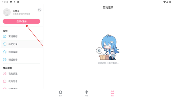 1、启动哔哩哔哩的App,在首页左上方点击登录的按钮。